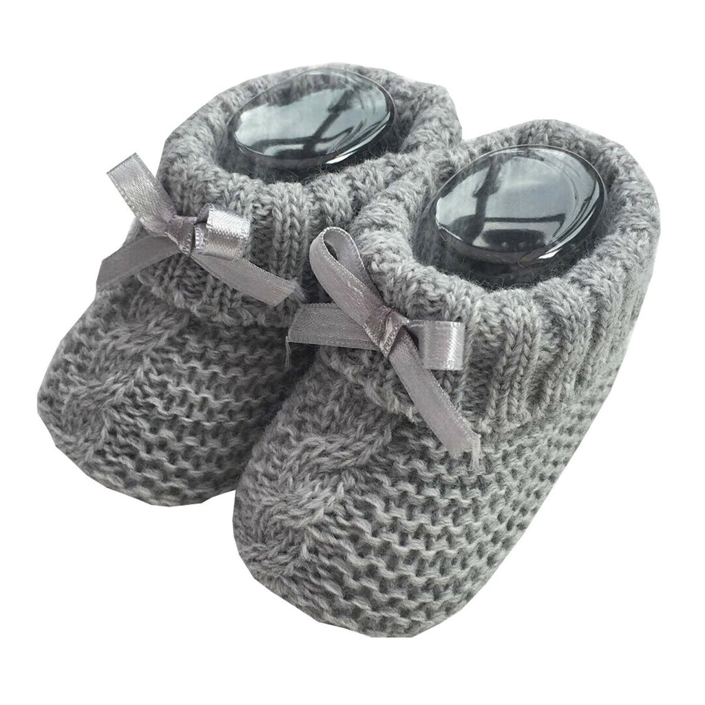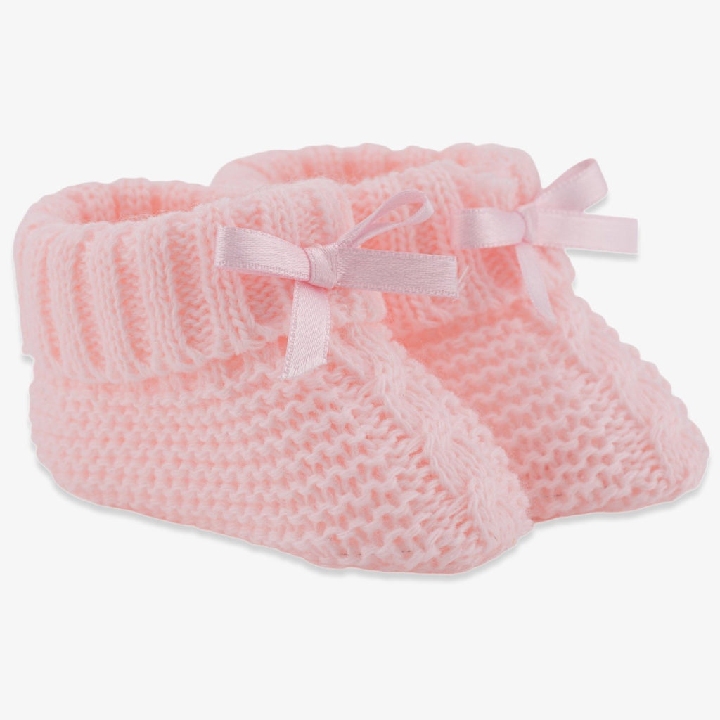 New born Baby Bow Knitted Booties- pink/grey